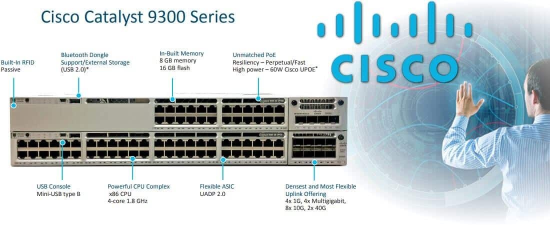 - Cisco Catalyst 9300 Series: Hiệu năng mạnh mẽ, tích hợp bộ xử lý AMD DPU, lý tưởng cho các ứng dụng AI, IoT và môi trường nhiều người dùng.